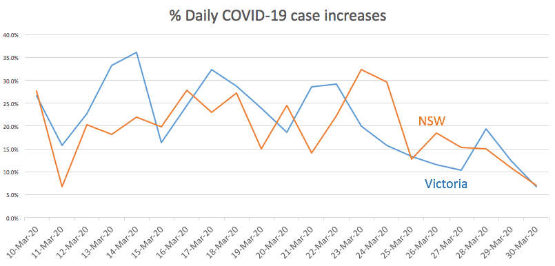 It’s early days into the major restrictions on life in Victoria & NSW (Australia) but we are down to under 7% case increases per day (after the number being 25%-ish per day for most of the last fortnight). And Australia is one of the top testers.