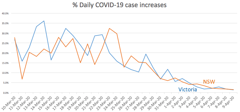 Victoria (1.3%) & NSW (1.4%) are heading towards near-eradication scenarios going on their % increase of cases per day.