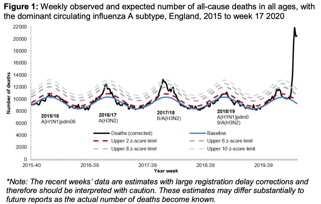This plot, thanks again to John Burn-Murdoch, shows the total UK deaths per week over the last five years.