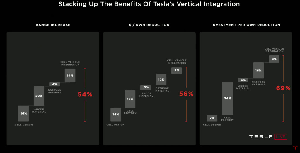Each innovation SEPARATELY adds between 10-15% improvement in energy density and/or cost reduction.